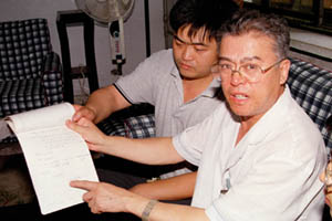 李洪志曾住院手術(shù)(二) ![]() 8月3日,吉林省人民醫(yī)院發(fā)現(xiàn)李洪志曾在該醫(yī)院做過(guò)闌尾炎手術(shù)的住院病歷。李洪志在1984年7月8日早晨突 發(fā)急性化膿性闌尾炎,住進(jìn)吉林省人民醫(yī)院普通外科,發(fā)燒38.9度,于當(dāng)天下午實(shí)施闌尾切除手術(shù),住院10天。由于當(dāng) 時(shí)醫(yī)生筆誤,錯(cuò)將李洪志寫作“李宏志”,根據(jù)病歷上的患者年齡、工作單位、家庭住址及家屬(李妻)的手術(shù)簽字,可確定 患者即李洪志。圖為當(dāng)時(shí)為李洪志做手術(shù)的主治醫(yī)師、現(xiàn)吉林省人民醫(yī)院副院長(zhǎng)李英杰(右)講述當(dāng)年為李洪志確診手術(shù)的情 景。張寶江攝(新華社稿 傳真照片) |