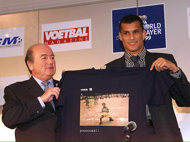 圖文:里瓦爾多榮獲1999年世界最佳球員稱號 2000年1月25日 07:20 ![]() ![]() ![]() 布魯塞爾1月24日消息:西班牙巴塞羅那隊(duì)的巴西前鋒里瓦爾多24日被評選為國際足聯(lián)1999年世界最佳球員 。 據(jù)新華社報道,里瓦爾多在有140個國家隊(duì)教練參加的投票評選中獲得勝利,并成為繼羅馬里奧(1994年)和 羅納爾多(1996和1997年)之后第三個贏得這一殊榮的巴西球員。 英格蘭中場球員貝克漢姆和阿根廷的巴蒂斯圖塔在這次投票中,分別名列第二和第三。 里瓦爾多1999年為巴西贏得美洲杯賽冠軍和為巴塞羅那隊(duì)奪得西班牙甲級聯(lián)賽冠軍作出了杰出的貢獻(xiàn)。他上月還 被評選為1999年歐洲最佳球員。 里瓦爾多還被《世界足球》雜志的讀者評選為1999年世界最佳球員。 中國女子足球隊(duì)隊(duì)長孫雯獲得了1999年女足最佳運(yùn)動員獎,并領(lǐng)取了1999年世界杯女子足球賽金靴獎。 |