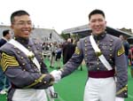 七華裔西點軍校畢業(yè)(附圖) 2001年6月4日 13:54 ![]() 洪偉杰(左)以第十五名的成績登畢業(yè)生榮譽(yù)榜,臺北市長馬英九的外甥余靖(右)亦獲多項榮譽(yù) 中新網(wǎng)紐約6月3日消息:位于紐約上州的美國陸軍官校(西點軍校,United States Military Academy atWest Point) 2日在滂沱大雨中舉行2001年畢業(yè)典禮,901名應(yīng)屆畢業(yè)生中,有7名華裔子弟,其中洪偉杰以第十五名的成績登畢業(yè)生榮譽(yù)榜。 這七名華裔子弟是:洪偉杰、潘安驪、余靖、鄭建明、李之華、陳德凱(譯音)和楊丹尼爾(譯音),其中潘安驪是昨日唯一有華裔血統(tǒng)的女性畢業(yè)生,而余靖是臺北市長馬英九的外甥。 |