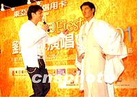 組圖:劉德華在港時(shí)代廣場為其蠟像揭幕 2001年06月30日 21:12 ![]() 香港著名男歌星劉德華30日在時(shí)代廣場為其蠟像揭幕。劉德華是首位獲倫敦杜莎夫人蠟像館制作的香港歌手。首次與自己的蠟像見面的劉德華欣喜的為蠟像整裝。中新社傳真洪少葵攝 ![]() 亞洲樂壇巨星劉德華30日在時(shí)代廣場為其蠟像揭幕時(shí),擁吻蠟像館外籍女工作人員,令其開心不已。中新社傳真洪少葵攝