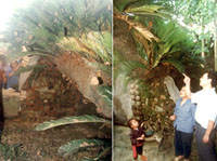 圖:江西一村落發(fā)現(xiàn)巨形鐵樹(shù) 2001年07月12日 09:41 ![]() 江西省吉水縣盤(pán)谷鎮(zhèn)谷村,近日發(fā)現(xiàn)一株形態(tài)奇特的巨形鐵樹(shù),有關(guān)專家估測(cè),這株長(zhǎng)六米、徑寬近一米的鐵樹(shù)年歲在五百年以上。據(jù)說(shuō)有客商要出八萬(wàn)元錢(qián)收購(gòu)此樹(shù),而樹(shù)主胡桂秀認(rèn)為,鐵樹(shù)是鎮(zhèn)村之寶,不可賣(mài)出。中新社圖 張長(zhǎng)根 攝