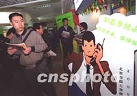 圖:北京首次二手房展會(huì)吸引工薪階層 2002年03月15日 15:55 ![]() 北京市首次二手房展會(huì)十五日開展,眾多工薪階層市民和外地打工人員來此尋找一處適合自己的家園。據(jù)悉,該展共籌集了近八千套二手房源,相當(dāng)一部分房屋的售價(jià)都在三十萬元人民幣以下。中新社記者 王麗南 攝