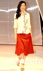 香港太古廣場連日舉辦2002年春夏時裝巡禮,模特在T型天橋展演最新流行時裝,今季服飾以簡潔舒適而深受女士歡迎。中新社傳真 洪少葵 攝