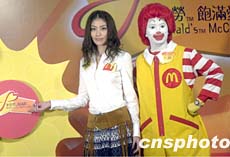 圖:陳慧琳在太陽道具貼上《麥當奴飽滿愛》標志 2002年03月20日 19:54 ![]() 歌星陳慧琳20日在香港出席《麥當奴·飽滿愛心暖萬家》慈善活動揭幕儀式,麥當奴叔叔陪同陳慧琳在太陽道具貼上《麥當奴飽滿愛》標志。中新社傳真 鄧慶樂 攝