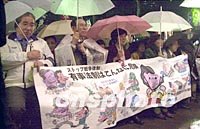 組圖:日本民眾冒雨集會游行反對“有事法制” 2002年03月23日 11:10 ![]() 圖(1) ![]() 圖(2) ![]() 圖(3) 說明(1)來自勞動、教育、醫(yī)療、宗教等民間團(tuán)體的三千五百多名日本民眾,22日晚在東京市內(nèi)一個公園里冒雨集會,反對政府制定“有事法制”。 說明(2)日本多個民間團(tuán)體22日晚在東京市內(nèi)一個公園里冒雨集會,反對政府制定“有事法制”。圖為市民們用漫畫歷數(shù)“有事法制”的種種危害。 說明(3)三千五百多名日本民眾22日晚在東京市內(nèi)一個公園里冒雨集會并游行,反對政府制定“有事法制”。圖為日本共產(chǎn)黨的國會議員聲援游行隊伍,并接受他們的請愿。中新社圖 陶光雄 攝 相關(guān)報道: 相關(guān)報道:森喜朗決定設(shè)立所謂“有事法制”