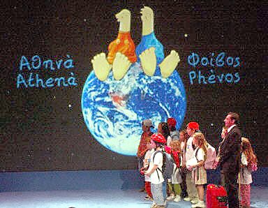 圖:2004年雅典奧運(yùn)會(huì)正式吉祥物 2002年04月05日 13:53 ![]() 雅典兒童在4月4日的一個(gè)典禮上,站在銀幕前聽2004年雅典奧運(yùn)會(huì)兩個(gè)吉祥物的起源講解。法新社