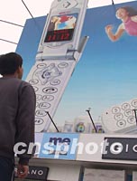 圖:王府井街頭豎起新型手機廣告時間牌 2002年04月21日 17:48 ![]() 近日,在北京王府井的街頭立起了一塊用手機廣告裝飾的時間牌,它可以顯示時間和溫度,給行人帶來方便。手機廠商為了搶占手機市場可謂煞費苦心。中新社記者 杜洋 攝