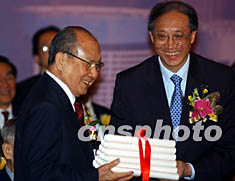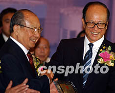 ![]() 擁有一百萬(wàn)潮藉人口、一百多個(gè)潮藉社團(tuán)的香港,4月23日成立了“香港潮屬社團(tuán)總會(huì)”, 主席陳偉男向出任榮譽(yù)會(huì)長(zhǎng)的香港長(zhǎng)實(shí)集團(tuán)主席李嘉誠(chéng)頒發(fā)證書。中新社記者 任晨鳴 攝