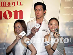 圖:佳能亮麗小姐與吳彥祖共同展示新產(chǎn)品 2002年04月30日 19:51 ![]() 影星吳彥祖30日在香港出席“佳能”舉行“Canon Digital Magic型機(jī)一觸大派對(duì)”記者會(huì),“佳能”特別安排兩位亮麗小姐與吳彥祖共同展示全新數(shù)碼攝影機(jī)。中新社傳真 鄧慶樂(lè) 攝