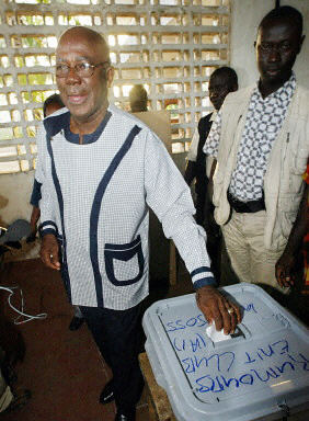 圖:5月14日塞拉利昂舉行總統(tǒng)選舉 2002年05月14日 21:10 5月14日,塞拉利昂舉行了內(nèi)戰(zhàn)結(jié)束后的首次總統(tǒng)選舉,此次共有9個候選人參加總統(tǒng)競選,參加投票的選民預(yù)計(jì)將達(dá)到230萬。中新網(wǎng)圖