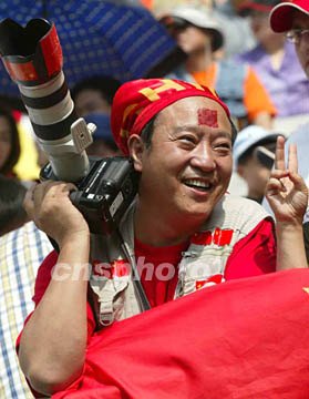 圖:牛群觀戰(zhàn)世界杯 2002年06月13日 22:33 ![]() 中國隊(duì)十三日在漢城世界杯體育場迎戰(zhàn)土耳其隊(duì),圖為著名相聲演員牛群觀戰(zhàn)助威。作者:毛建軍