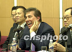 美國“賭王”史提芬·永利談“澳門賭王”何鴻燊 2002年06月25日 08:31 ![]() 永利度假村(澳門)股份有限公司二十四日與澳門特區(qū)政府簽署娛樂場幸運博彩經(jīng)營批給合同簽字儀式后,永利負(fù)責(zé)人史提芬·永利在記者招待會上談笑風(fēng)生。李剛 攝