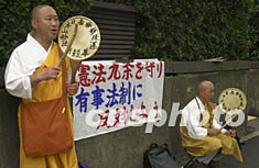 圖:日本僧侶國會前反對有事法制 2002年07月02日 20:10 ![]() 日本山妙法寺的僧侶在國會議員會館前頌經(jīng),反對正在國會審議的有事法制,要求日本政府嚴(yán)守“放棄戰(zhàn)爭”的憲法第九條。作者:陶光雄