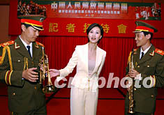 ![]() 香港亞視當(dāng)紅主持人朱慧珊,7月4日出席中國人民解放軍軍樂團(tuán)記者會(huì),她將主持7月6日晚在香港紅磡體育館舉行的中國人民解放軍軍樂團(tuán)演出晚會(huì)。任晨鳴 攝