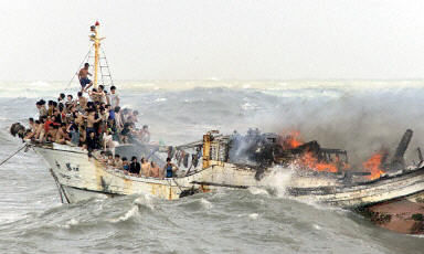 大陸漁工船失火:133人獲救 2人重傷 1人失蹤 2002年07月09日 17:45 ![]() 搭載百余名祖國大陸漁工的臺灣籍海上船屋“元勝”二號今天上午在高雄外海失火。(法新圖) 中新網(wǎng)香港7月9日消息:臺北訊,作為祖國大陸漁工“海上旅館”用的臺灣屏東籍“元勝二號”漁工船,今天在高雄海域發(fā)生火災(zāi)。據(jù)臺灣媒體最新消息,事故中目前共計救起133名大陸漁工,其中11人受傷送醫(yī),另有一人失蹤。 據(jù)“中央社”報道,“元勝二號”漁工船今天上午在高雄大林蒲外海發(fā)生火警,造成祖國大陸漁工兩人重傷、九人輕傷送醫(yī)。 受傷的11名大陸漁工中,有10人被送往高雄市的小港醫(yī)院急救。其各自的傷勢情況如下—— 蕭輝,25歲,右手挫傷;陳如君,27歲,左手撕裂傷及頸部扭傷;陳良紅,28歲,頭部及右臉頰外傷;沈繼兵,32歲,頭部外傷及背部多處挫傷;顧海兵,23歲,右手臂擦傷及左小腿挫傷;張永,27歲,頭部外傷、多處撕裂傷、左手臂及右手肘挫傷;唐宗林,20歲,嗆傷及顏面灼傷;劉國保,29歲,嗆傷及胸部挫傷;師福君,21歲,嗆傷;李建國,26歲,臉部燒燙傷合并嗆傷。 這10名受傷漁工中,除師福君及李建國重傷外,其余都屬輕傷。其中師福君因在被救過程中落海,吸入大量海水,造成肺部吸入性嗆傷,經(jīng)急救后,傷勢穩(wěn)定,仍住院觀察;而李建國傷勢最為嚴(yán)重,但暫時亦無生命危險。 另一名祖國大陸漁工任忠均,22歲,身上多處擦傷,經(jīng)急救已無大礙。 此外,一名失蹤者的身份目前待查。 原停泊在高雄與屏東間外海的“元勝”二號海上船屋,今天上午約8:30時在高雄南星計劃填海造陸區(qū)外海一浬處突然起火。由于風(fēng)浪太大,救援船只無法靠近。臺灣方面遂派出直升機(jī),以鋼纜吊掛、接駁方式,將船屋上的大陸漁工救至岸上。據(jù)悉,救援行動歷經(jīng)近5個小時。 “元勝”號是臺灣屏東縣籍的祖國大陸漁工海上船屋,停泊高雄與屏東間外海,因臺灣方面不允許祖國大陸漁工上岸,該船屋被專門用于出海作業(yè)漁船雇用的大陸漁工居住。 相關(guān)報道:"突然巨浪打來…"大陸獲救漁工回憶海上大火驚魂 相關(guān)報道:臺灣對祖國大陸出口趨增 上半年同比增長逾七成 相關(guān)報道:大陸漁工船起火132人獲救 落水失蹤人數(shù)說法不一 相關(guān)報道:圖文:大陸漁工船屋被燒毀 128名漁工全部獲救 相關(guān)報道:七位大陸漁工在高雄急救 有人跳海 船屋沉沒一半 相關(guān)報道:臺灣船屋失火 救起60余大陸漁工 尚有30多待救 相關(guān)報道:搭載大陸漁工的船只在臺灣海峽失火 100多人待救 相關(guān)報道:一艘載有100多人的大陸漁船在臺灣海峽著火