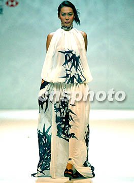 圖:港時(shí)裝節(jié)展示鄧達(dá)智的“水墨畫”女裙 2002年07月12日 10:11 ![]() “2003香港春夏時(shí)裝節(jié)”7月10日晚舉行香港十位頂尖設(shè)計(jì)師作品展示,模特身著設(shè)計(jì)師鄧達(dá)智的一件上繪墨竹全白透明沙裙款款款而行,宛如一幅流動(dòng)的中國水墨國畫。任晨鳴 攝
