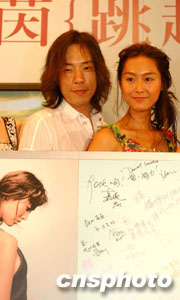 圖:香港明星朱茵EP“跳起來(lái)”唱片面世。 2002年07月17日 18:39 ![]() 香港明星朱茵EP“跳起來(lái)”唱片十八日面世。這張唱片專輯由黃貫中監(jiān)制,共收錄七首歌曲。圖為十七日朱茵與黃貫中在香港出席“跳起來(lái)”發(fā)布會(huì)。中新社傳真 潘索菲 攝