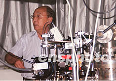 圖:中國(guó)科學(xué)家完成“玻色—愛(ài)因斯坦凝聚”實(shí)驗(yàn) 2002年07月24日 10:41 ![]() 繼美、德等國(guó)科學(xué)家之后,中國(guó)科學(xué)家今年也成功實(shí)現(xiàn)了愛(ài)因斯坦七十年前預(yù)言的新物態(tài)——“玻色—愛(ài)因斯坦凝聚”實(shí)驗(yàn)。圖為領(lǐng)導(dǎo)這一項(xiàng)目的中國(guó)科學(xué)院院士王育竹日前在上海實(shí)驗(yàn)室介紹該項(xiàng)實(shí)驗(yàn)。中新社記者 孫自法 攝