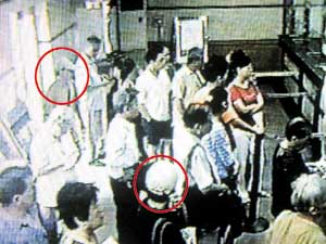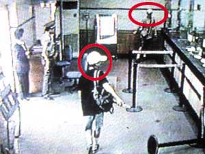 北京懸賞萬(wàn)元征集三元橋銀行劫案嫌犯線索(圖) 2002年08月04日 12:31 ![]() 兩名嫌疑人假作儲(chǔ)戶排隊(duì)觀察儲(chǔ)蓄所內(nèi)周圍情況 ![]() 持刀向柜臺(tái)內(nèi)喊話,另一人沖向柜臺(tái)出入口 中新網(wǎng)北京8月4日消息:7月31日上午9時(shí)35分左右,位于北京朝陽(yáng)區(qū)三元東橋的中國(guó)工商銀行三元橋南儲(chǔ)蓄所發(fā)生了一起持槍搶劫案,兩名犯罪嫌疑人搶劫未遂逃跑。 據(jù)京華時(shí)報(bào)報(bào)道,前天,記者在望京、三元橋等地的居民小區(qū)看見了警方張貼的協(xié)查通報(bào)。目前,根據(jù)相關(guān)資料,案件中現(xiàn)場(chǎng)兩名嫌疑人的特征已被掌握,警方已懸賞1萬(wàn)元向市民征集有價(jià)值的線索。 兩名嫌疑人特征如下: 1.嫌疑人甲,男,25歲左右,身高1.70米左右,體瘦、圓臉、膚色較黑,頭戴白色棒球帽,上穿土黃色T恤衫,下穿灰色帶花格短褲,腳穿白色長(zhǎng)襪,隨身帶一淺黃色袖珍挎包。該人隨身攜帶自制小口徑手槍一支。 2.嫌疑人乙,男,25歲左右,身高1.70米左右,留平頭,膚色較黑,頭戴白色棒球帽,上穿黑灰色T恤衫,下穿白色短褲,腳穿白色長(zhǎng)襪,隨身帶有一黑色挎包。該人持刀。