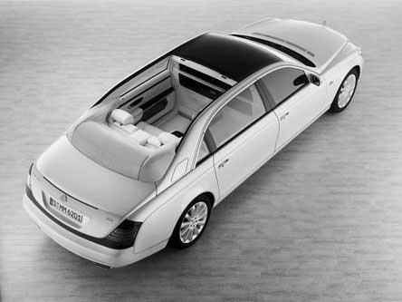 Landaulet的原義是“活頂四輪馬車(chē)”,設(shè)計(jì)理念源自于經(jīng)典的邁巴赫敞篷車(chē)。令人感到有趣的是,這款不可思議的頂級(jí)豪華車(chē)的確帶有一些“活頂馬車(chē)”的設(shè)計(jì)訴求,比如前后座艙分開(kāi)和后排車(chē)頂打開(kāi)等。