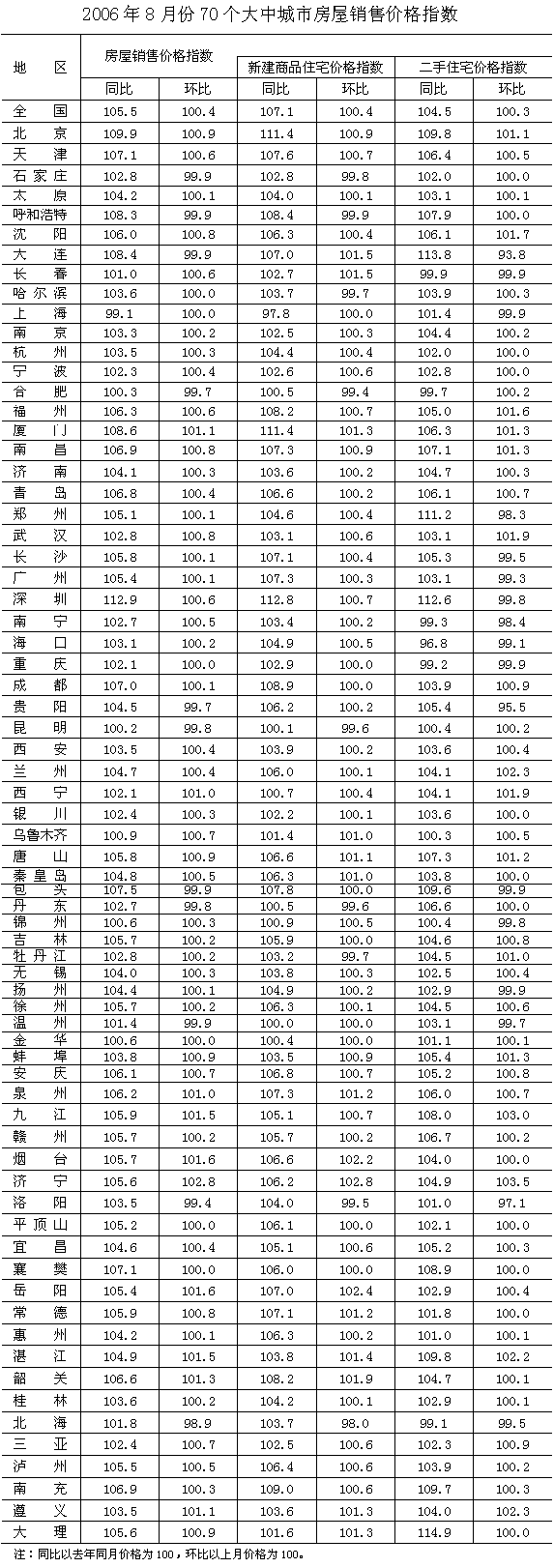 中新網(wǎng)9月13日電 據(jù)《經(jīng)濟(jì)參考報(bào)》報(bào)道,國家統(tǒng)計(jì)局日前公布,8月份,全國70個(gè)大中城市房屋銷售價(jià)格同比上漲5.5%,漲幅比上月低0.2個(gè)百分點(diǎn)。與去年同月相比,新建商品住宅、二手住宅銷售價(jià)格上漲幅度有所擴(kuò)大,新建非住宅商品房、非住宅二手房銷售價(jià)格上漲幅度明顯回落。