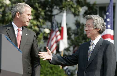 文章認(rèn)為,“小泉布什組合”的共同表演,首先是提升同盟地位,擴(kuò)展合作范圍。日美首腦發(fā)表的題為《新世紀(jì)的日美同盟》的一份聯(lián)合文件稱,兩國擁有共同的價值觀,擁有共同的利益,肩負(fù)共同應(yīng)對亞太地區(qū)安全環(huán)境變化帶來挑戰(zhàn)的責(zé)任。顯然,提升和擴(kuò)展同盟關(guān)系是美日兩國出于自身利益的共同需求。一家日本媒體說得很直白:“新世紀(jì)的日美同盟就是要將日美兩國的軍事合作擴(kuò)大到全球范圍”。從美方而言,期待日本對于美國全球戰(zhàn)略保持亦步亦趨的同時,繼續(xù)發(fā)揮無可替代的“取款機(jī)”作用。從日方而言,已經(jīng)無意自行構(gòu)筑外交方略,只是一心借助美國保駕護(hù)航,不斷突破傳統(tǒng)框架和憲法束縛,謀求早日成為政治大國。當(dāng)然,布什破格接待小泉的用意,除了表示安撫和贊賞之外,還希望對小泉后任產(chǎn)生示范作用:像小泉那樣言聽計從。