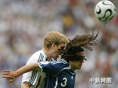 德國(guó)與阿根廷兩大足球豪門在世界杯歷史上兩次決賽相遇,各勝一場(chǎng),第三度的交手今天在二00六年德國(guó)世界杯第一場(chǎng)四分之一決賽中上演。這場(chǎng)世紀(jì)大戰(zhàn),開場(chǎng)并沒(méi)有上演精彩的攻勢(shì)足球,雙方打得非常拘謹(jǐn),唯一一次亮點(diǎn)就是德國(guó)隊(duì)的施奈德助攻,巴拉克后排插上頭球攻門,可惜力量稍大偏出門柱。