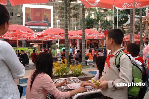 10月22日,路人駐足福州臺(tái)江步行街,觀看中央電視臺(tái)現(xiàn)場(chǎng)直播的十七屆中共中央政治局常委同中外記者見面實(shí)況。中新社發(fā) 鄭祚聲 攝