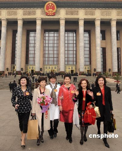 三月八日,國(guó)際勞動(dòng)?jì)D女節(jié),全國(guó)政協(xié)女委員參加完大會(huì)笑容燦爛走出北京人民大會(huì)堂。中新社發(fā) 廖攀 攝