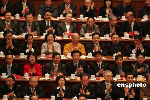 委員鼓掌慶賀全國政協(xié)新領(lǐng)導人當選