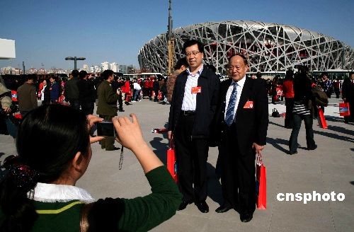 3月13日下午,出席全國人大會的部分代表利用休息時間參觀奧運場館。中新社發(fā) 王輝 攝