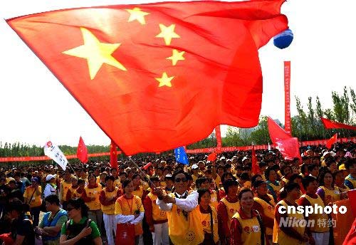 4月26日,在即將進(jìn)入奧運(yùn)倒計(jì)時(shí)100天的周末里,“微笑北京志愿奧運(yùn)共創(chuàng)和諧——2008春季北京國際長走大會(huì)”在北京朝陽公園舉行。中新社發(fā) 廖攀 攝