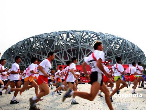 北京奧運會倒計時100天群眾馬拉松接力活動暨2008年北京國際長跑節(jié),4月30日上午在北京國家體育場公共區(qū)隆重舉行,活動中馬拉松接力賽、群眾建身長跑、群眾體育展示等內容豐富多彩、氣氛活躍祥和。此項活動由國家體育總局、中國奧委會、北京市政府、第29屆奧林匹克運動會組委會主辦。 中新社發(fā) 宋吉河 攝