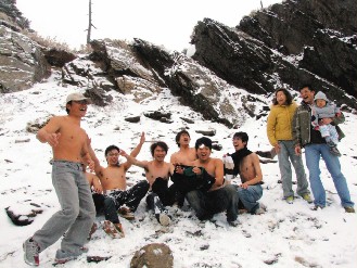 玉山迎來(lái)今年第一場(chǎng)雪 市民光膀子撒歡(圖)