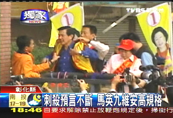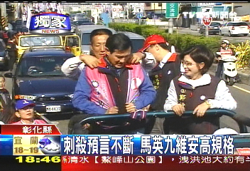 這一陣子馬英九所到之處,總是防彈公文包、防彈盾牌貼身護(hù)衛(wèi)。尤其是在上個(gè)星期六,馬陣營(yíng)接獲通知有人要在嘉義刺殺馬英九,安全人員立刻進(jìn)入紅色警戒。