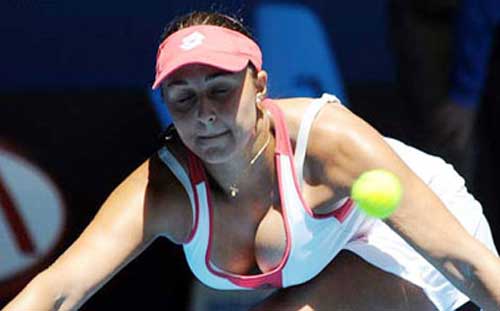 這位舉止火爆的奧地利女選手已經(jīng)成為今年澳網(wǎng)的熱點(diǎn)話題之一。當(dāng)然大家討論的重點(diǎn)不是她的球技而是她暴露的穿著。用美國(guó)媒體的話說(shuō),“觀眾并不關(guān)心她打得怎樣。他們只希望她能夠走得越遠(yuǎn)越好,因?yàn)檫@樣他們才能有的看!