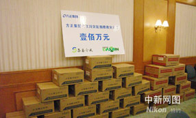 凝聚著臺(tái)資企業(yè)富士康科技集團(tuán)及其六十萬(wàn)員工愛(ài)心的六千萬(wàn)元人民幣善款,今天在此間由富士康集團(tuán)總裁郭臺(tái)銘的特別顧問(wèn)張整魁先生,捐贈(zèng)給遭受地震災(zāi)害的四川災(zāi)區(qū)。這是目前四川省收到的最大一筆臺(tái)商捐款!