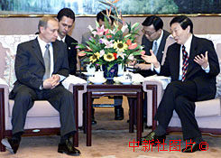 中國國務(wù)院總理朱镕基,7月18日在北京會見俄羅斯總統(tǒng)普京。中新社記者 滿會喬 攝