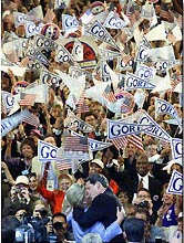 圖文:戈爾副總統(tǒng)為與夫人的激情之吻作辯護 2000年8月22日 17:32 ![]() 中新網(wǎng)華盛頓8月22日消息:美國副總統(tǒng)、民主黨總統(tǒng)候選人戈爾今天為自己在民主黨大會上與夫人的熱烈接吻作辯護,稱這不是出于競選策略。 戈爾今天在接受美國廣播公司的采訪時稱:“這一吻完全是自然的,這是我為了表示對夫人愛意作出的一個姿態(tài)。” 這一接吻事件發(fā)生在民主黨大會的最后一天,當戈爾副總統(tǒng)夫人叫戈爾發(fā)表接受總統(tǒng)提名的演說時,戈爾副總統(tǒng)在大庭廣眾熱吻了夫人。 同在競選中的美國政客為爭取選票的接吻不同,戈爾的吻是長時間的而且是有力的。據(jù)美國廣播公司稱這一吻持續(xù)了五秒鐘,而這使美國媒體大作文章,與此吻有關的文章就達107篇。 一位美國記者今天問戈爾:“你是否想通過這件事來告訴美國人,你是一個有感情的男人,以改變你在人們心目中的技術官僚的形象?” 戈爾副總統(tǒng)對此回答說:“我沒有想過這一點,我沒有把這作為我競選策略的一部分,我當時確實非常感動。在數(shù)千人鼓掌和歡呼的人面前,我想與夫人共享這真正美好的情感。” |