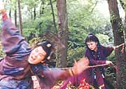 導(dǎo)演親自傳授劍法 《笑傲江湖》拍攝近尾聲 2000年9月7日 16:59 ![]() 中新網(wǎng)北京9月7日消息:央視40集電視連續(xù)劇《笑傲江湖》的拍攝已近尾聲。預(yù)計9月下旬即可正式關(guān)機。 目前,全劇的拍攝已進入最精彩的階段,令狐沖的絕活兒“獨孤九劍”頻頻亮相,而把這劍法傳授給他的,并非是武林高人,而是該劇導(dǎo)演黃健中。 為了使令狐沖的劍術(shù)亮相精彩,黃導(dǎo)特意設(shè)計了幾場精彩的武打戲。令狐沖的扮演者李亞鵬不僅扮相英俊,其劍術(shù)“速成”也很到位。他和于承惠飾演的風(fēng)清揚的對手戲十分火爆。 此外金庸對《笑傲江湖》的拍攝十分關(guān)注,不時派人詢問進度,他對茅威濤飾演的東方不敗尤為滿意,認(rèn)為她演出了神韻。 《羊城晚報》報道說,拍攝至今,金大俠還未看過央視版的樣片,所以在該劇停機之前,他打算再到劇組探班。據(jù)悉,該劇9月關(guān)機后,即返京進行后期制作,可望明年春天和觀眾見面。(完) 相關(guān)報道:《笑傲江湖》拍攝工作繼續(xù)進行 相關(guān)報道:《笑傲江湖》劇組遭遇火災(zāi) |