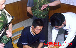 重慶警方9月19日晚21時(shí)50分在重慶渝中區(qū)觀音巖捕獲渝、湘、鄂系列槍支搶劫案首犯張君。圖為張君被捕獲后接受警方審問(wèn)。作者:石智勇