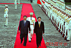 日本首相森喜朗為朱镕基訪日舉行歡迎儀式