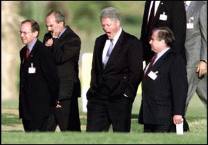 圖文:中東緊急峰會(huì)首日無進(jìn)展 2000年10月17日 07:19 克林頓希望以巴雙方能化解歧見,停止沖突。 克林頓為中東和平多年來盡力斡旋,在峰會(huì)休息時(shí)間,也出現(xiàn)了這個(gè)打呵久的倦態(tài)。 中新網(wǎng)北京10月17日消息:綜合通訊社報(bào)道,旨在結(jié)束巴以流血沖突的中東問題多邊首腦會(huì)議﹐星期一在埃及的紅海渡假勝地沙姆沙伊赫開幕﹐但巴勒斯坦文化新聞部長(zhǎng)拉博對(duì)記者說﹐會(huì)議至今沒有取得進(jìn)展。 綜合外電報(bào)道,聯(lián)合國秘書長(zhǎng)安南﹑巴勒斯坦民族權(quán)力機(jī)構(gòu)主席阿拉法特﹑以色列總理巴拉克﹑美國總統(tǒng)克林頓﹑約旦國王阿卜杜拉和歐盟負(fù)責(zé)外交和安全政策的高級(jí)代表索拉納出席了會(huì)議。 拉博表示﹐巴勒斯坦要求以色列不讓武裝的猶太定居者留在巴勒斯坦管治地區(qū)之內(nèi)。他還表示﹐以方提出了法塔赫組織持有武器的問題﹐以及要求重新逮捕巴勒斯坦警方最近釋放的哈馬斯分子的問題。 他指出﹕“他們(以色列)在這次峰會(huì)上的全部愿望﹐就是討論這兩件事。但這并不是我們來此的目的。” 以色列總理巴拉克的安全首腦亞托姆說﹐這次峰會(huì)“情況復(fù)雜﹐充滿困難和爭(zhēng)執(zhí)”。但他又堅(jiān)稱各方“都有解決問題的真誠愿望”。但以色列代表團(tuán)的另一名成員對(duì)此不以為然﹐指責(zé)巴勒斯坦人造成僵局。 埃及總統(tǒng)穆巴拉克在開幕式上發(fā)表講話﹐呼吁結(jié)束在巴勒斯坦領(lǐng)土上的“半戰(zhàn)爭(zhēng)狀態(tài)。”因?yàn)檫@種狀態(tài)已造成大量人員傷亡的悲劇。他呼吁“挽救和平進(jìn)程尚余的誠信”。 他指責(zé)以色列說﹕“巴勒斯坦人民過去兩周所受到的侵犯﹐驅(qū)使我召集這次會(huì)議! 美國總統(tǒng)克林在峰會(huì)開幕辭中宣稱﹕“我們不能承受失敗。和平進(jìn)程的未來和中東地區(qū)的穩(wěn)定處于危急之中! 克林頓呼吁設(shè)立調(diào)查團(tuán)去調(diào)查以巴雙方這次多年來最嚴(yán)重沖突的原因﹐避免事件重演。 他說﹕“我們希望談判能再次展開。” 但巴拉克在會(huì)上強(qiáng)調(diào)﹐“以色列不接受任何一種國際調(diào)查委員會(huì)﹐只會(huì)接受一個(gè)以美國為首的調(diào)查小組”。 作為中東和平進(jìn)程聯(lián)合發(fā)起者的俄羅斯﹐沒有出席中東峰會(huì)。外長(zhǎng)伊萬諾夫在莫斯科說﹕“我們沒有接到邀請(qǐng)!钡麑(duì)此反應(yīng)低調(diào)﹐稱峰會(huì)成果比俄羅斯是否參與更重要。 上午的會(huì)談歷時(shí)約三十分鐘?肆诸D和穆巴拉克分別致開幕辭之后﹐會(huì)議小休。 白宮發(fā)言人克勞利說﹐即使以巴雙方無法達(dá)成協(xié)議﹐克林頓也不打算再延長(zhǎng)停留期。他說﹐克林頓計(jì)劃于午夜離開﹐但可能會(huì)推遲十二小時(shí)。 雖然總統(tǒng)任期只剩下三個(gè)月左右﹐但克林頓仍然希望能夠促成和議。不過﹐對(duì)這次首腦會(huì)﹐最樂觀的期望亦只是一項(xiàng)停火協(xié)議和一個(gè)雙方重開談判的日期。 克林頓說﹕“我們不應(yīng)因?yàn)檫^去幾個(gè)星期發(fā)生的事而完全放棄一切! 阿拉法特﹑巴拉克和克林頓在首腦會(huì)召開前都分別與穆巴拉克會(huì)晤過。 一名以色列高官說﹐巴拉克對(duì)穆巴拉克說﹐除非阿拉法特重新逮捕近日被巴勒斯坦釋放的大批激進(jìn)分子﹐以及命令保安部隊(duì)停止開槍和參與街頭騷亂﹐否則他無法撤走以色列軍隊(duì)或重開巴勒斯坦地區(qū)。” 巴勒斯坦議員兼政治分析員阿姆魯說﹕“我不認(rèn)為這次首腦會(huì)可以取得任何突破。即使有任何的成功﹐亦將是極之微小的﹐而且不保證可以使到緊張局勢(shì)結(jié)束! |