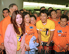 劉德華、陳慧琳在車站月臺合照。歌影紅星劉德華、陳慧琳18日在香港出席“長者地鐵安全運動”,同時為“暖流行動2000”主持揭幕禮,提倡敬老護(hù)老訊息,配合特區(qū)政府“終身學(xué)習(xí),老有所為”口號。圖為出席活動長者與劉德華、陳慧琳在車站月臺合照。中新社傳真鄧慶樂攝