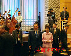 亞歐會議閉幕式后,金大中夫婦等候送別與會的亞歐領導人。中新社記者:王曉暉 攝