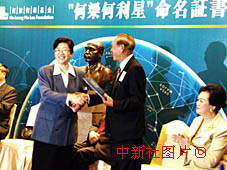 圖文:表彰港人貢獻 小行星被命名為“何梁何利星” 2000年11月8日 07:44 ![]() 朱麗蘭出席行星命名頒授儀式。中國科學院南京紫金山天文臺特別將一顆小行星命名為“何梁何利星”。國家科技部部長朱麗蘭(左)七日在香港出席該行星命名的頒授儀式。中新社傳真 王順 攝