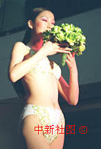 一名模特在北京的天橋上,以如花似玉為主題展示女性秋冬季節(jié)貼身內(nèi)衣的魅力。中新社圖 張宇 攝