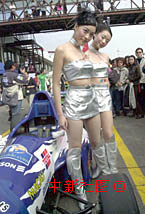 第四十七屆澳門大賽車云集了許多中外美女,為激烈的比賽增花添錦。中新社傳真 宗金柱 攝