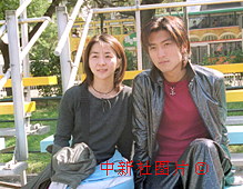 歌星謝霆鋒22日在港島維園拍攝電影《漫畫風云》外景,休息期間與一名日藉歌迷合照。中新社傳真鄧慶樂攝