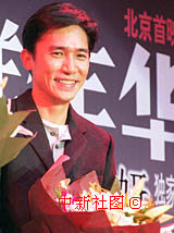 在53屆戛納電影節(jié)上榮獲兩項大獎的中國經典影片《花樣年華》,二十四日晚在北京嘉里中心飯店舉行首映式,影片中男主角扮演者,著名影星梁朝偉出席了首映式。中新社記者 錢興強 攝